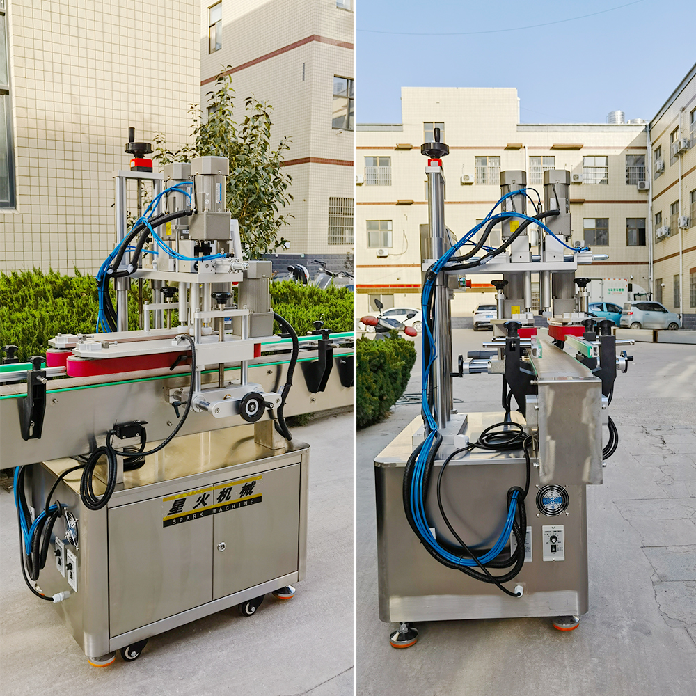 全自動夾蓋旋蓋機主要用于各種不同瓶型的理蓋、上蓋、旋蓋、輸送等生產工序,它能夠針對于各種不同形狀的容器旋蓋,如:圓形瓶、方形瓶、棱形瓶、橢圓形、異形瓶等瓶蓋。全自動夾蓋旋蓋機采用光電監測裝置,能夠精準、快速、有序的整理雜亂無章的瓶蓋,并將其向排列好送至夾帶處。