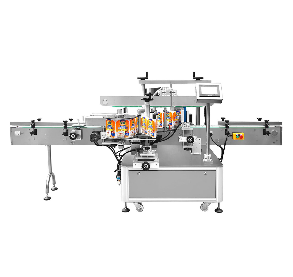 采用標準PLC+觸摸屏+標準傳感器電控系統控制,使用方便,維護簡單;具備無物不貼標,無標自動校正和自動檢測功能;人機交互界面中英文注釋和完善的故障提示功能、操作教導功能,故障排除說明;還可選配打碼和噴碼功能