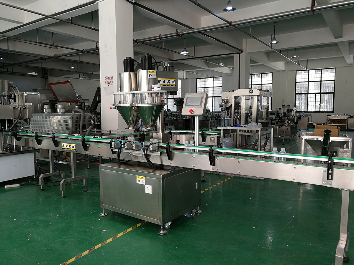 是針對瓶/罐裝的粉末物料充填灌裝而研制,如:豆奶粉、蛋白粉、豆漿粉、米粉、咖啡粉、蘇打粉、藕粉、核桃粉、膨松劑、泡打粉、酶制劑等。瓶裝粉劑灌裝生產線由理瓶機、粉劑灌裝機、理蓋旋蓋機、鋁箔封口機等設備組成,能完成粉劑物料的喂罐、托罐、充填計量、上蓋旋蓋、鋁箔封口、自動噴碼、紙箱包裝等工作。